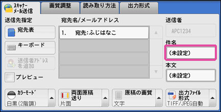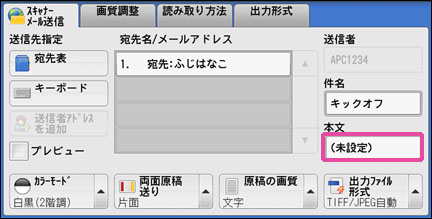 【補足】- [送信者]には、本体のメールアドレスや認証ユーザーのメールアドレスなどが表示されます。