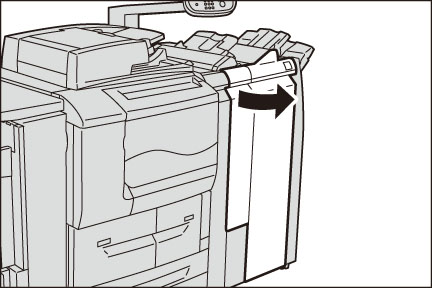 機械が停止していることを確認し、フィニッシャーの右カバーを開けます。