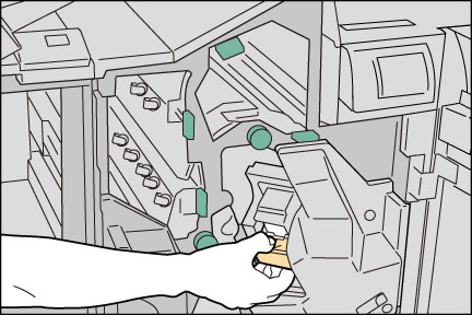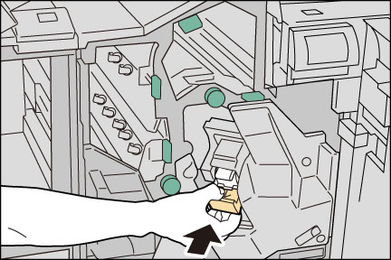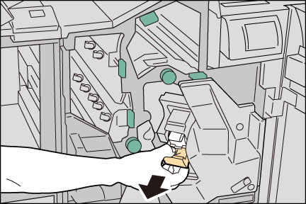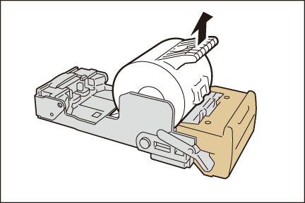 矢印で示した位置を持ち、ユニットからホチキスカートリッジを取り出します。