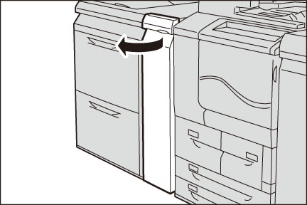 手順1で用紙が取り除けない場合は、用紙トレイ6、7(大容量給紙トレイA3ノビ2段)の正面カバーを開けて取り除きます。