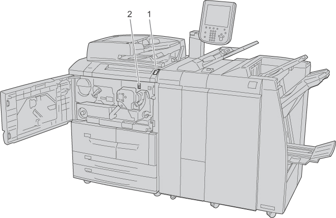 本体を動作させるときに、電源スイッチの[|]側を押して、電源を入れます。ウォームアップが終了すると、各機能の操作ができるようになります。 |