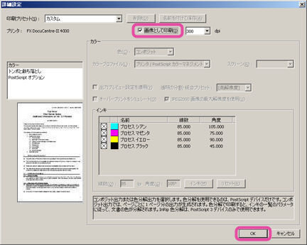 [画像として印刷]のチェックボックスにチェックを入れ、[OK]をクリックします。
