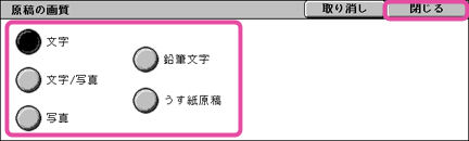 文字、写真など原稿の状況によって、適した画質でコピーするための設定をします。