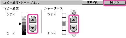 - 濃度/画像のシャープさを調整する[コピー濃度/シャープネス]