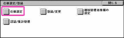 [仕様設定/登録]画面が表示されるまで、[閉じる]を押します。