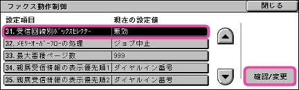 [▼]を押して、[受信回線別ボックスセレクター]を選び、[確認/変更]を押します。