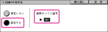 [設定する]を選び、保存先の親展ボックス番号を入力します。