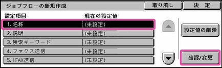 キーボードを使用して、ジョブフローの名称を入力し、[決定]を押します。