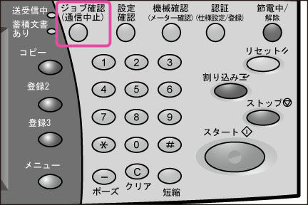 <ジョブ確認(通信中止)>ボタンを押します。