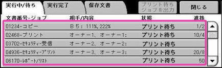ジョブを中止したり、優先的に実行する場合は、該当するジョブを押します(ここでは、プリント待ちのジョブを選びます)。