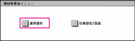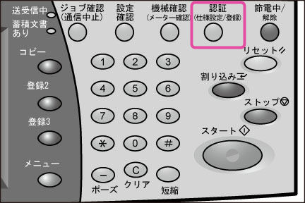 <認証(仕様設定/登録)>ボタンを押し、機械管理者モードに入ります。