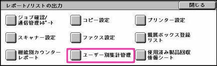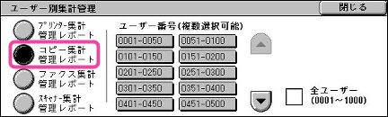 プリントする集計管理レポートを押します(ここでは[コピー集計管理レポート]を選びます)。