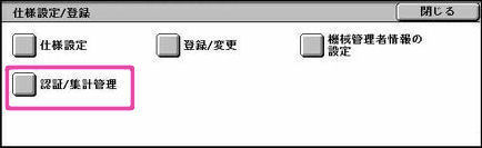 <認証(仕様設定/登録)>ボタンを押し、機械管理者モードに入ります。