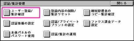 [仕様設定/登録]画面が表示されるまで、[閉じる]を押します。
