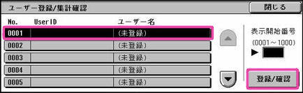使用されていないUser IDを選び、[登録/確認]を押します。