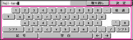 キーボードを使用して、アカウントユーザー名を入力し、[決定]を押します。