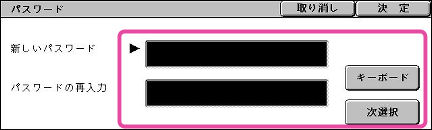 【補足】- パスワードの入力が必要な場合は、機械管理者IDを入力したあと[決定/次選択]を押し、パスワードを入力します。