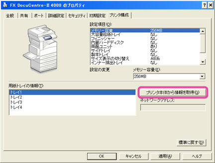 [プリンタ本体から情報を取得]をクリックすると、最新の情報が表示されます。