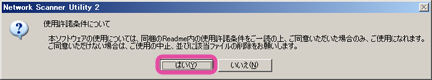 [使用許諾条件について]が表示されるので、[はい]をクリックします。