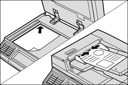 スキャンする原稿を原稿送り装置におもて面を上にしてセットするか、原稿ガラス上におもて面を下にして(1枚ずつ)セットします。