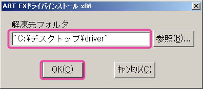 [解凍先フォルダ]が手順1で作成したフォルダー名になっていることを確認し、[OK]を押します。