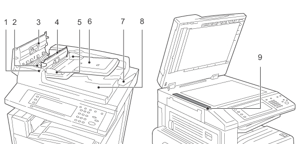 | 9 | 原稿読み取りガラス | 原稿を読み取ります。 |
