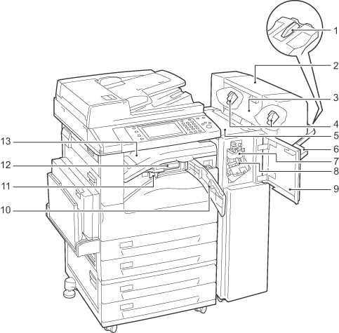9 正面カバー 紙詰まりの処置やホチキス針の交換などのときに開けます。