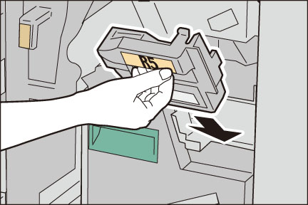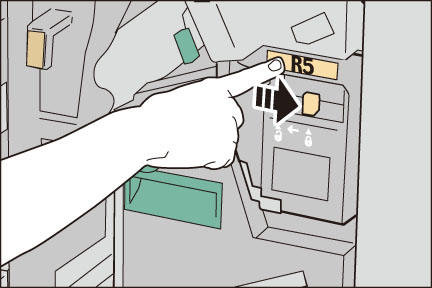 [R5]をしっかりと持ち、ホチキスダストボックスを取り外します。