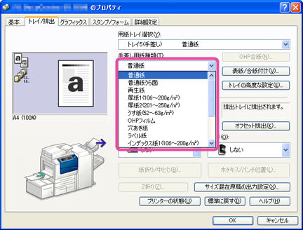 厚紙などを使うときは、次のように用紙の種類を変更してください。
