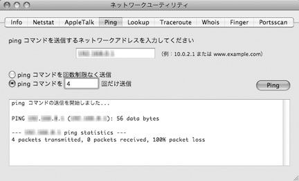 Mac OS Xには、TCP/IPネットワーク通信に関する問題をトラブルシュートするのに使用できるネットワークユーティリティアプリケーションが備わっています。Pingユーティリティは、ネットワークユーティリティアプリケーションに含まれており、Pingテストを実行するのに使用できます。