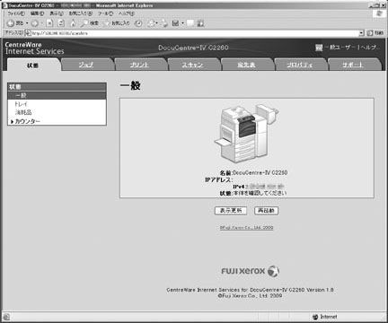 パソコンからCentreWare Internet Servicesにアクセスできるようにするには、本体にIPアドレスを設定しておく必要があります。操作を行う前に、機能設定リストをプリントし、本体にIPアドレスが設定されていること、およびHTTPプロトコルが有効になっていることを確認してください。