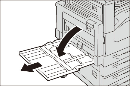 • 必要に応じて、延長トレイを引き出します。延長トレイは、2段階に引き出せます。延長トレイを引き出すときは、ゆっくりと引き出してください。