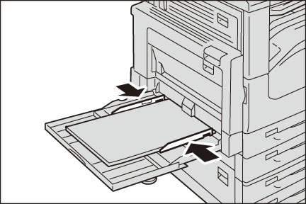 2. コピー、またはプリントする面を下に向けて、用紙をそろえた状態で先端を軽く突き当たるまで差し込みます。