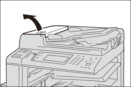 原稿送り装置のカバーの取っ手を引き上げて、止まるところまで開けます。