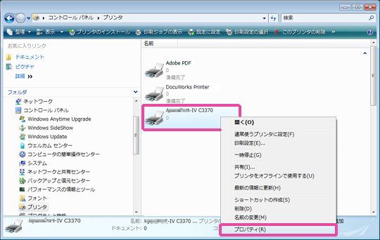 本機のアイコン上で右クリックし、[プロパティ]を選びます。