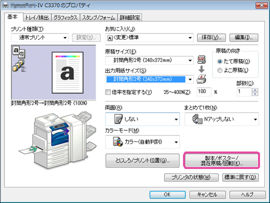 [製本/ポスター/混在原稿/回転]をクリックします。