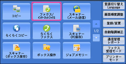 メニュー画面の[ファクス/インターネットファクス]を押します。