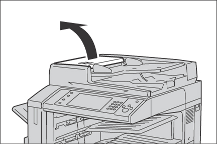 原稿送り装置の上面カバーの取っ手を持ち、止まるところまで開けます。
