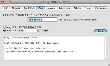 Mac OS Xには、TCP/IPネットワーク通信に関する問題をトラブルシュートするのに使用できるネットワークユーティリティアプリケーションが備わっています。Pingユーティリティは、ネットワークユーティリティアプリケーションに含まれており、Pingテストを実行するのに使用できます。