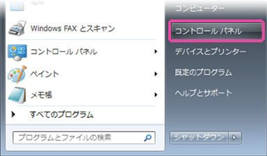 2. スタートメニューから[コントロールパネル]を選びます。