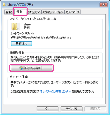 2. [共有]タブを開き、[詳細な共有]をクリックします。