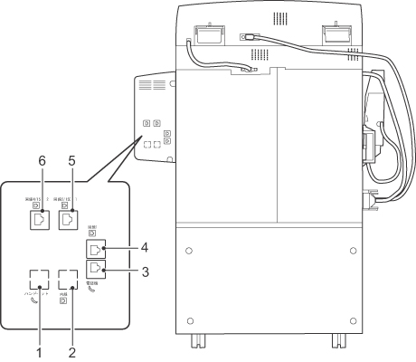 | 6 | 回線4/ISDN2 | 回線4、回線5 | 一般回線(内線も可)またはISDN回線を接続します。オプションの増設G3ポートキットまたはISDN G3/G4増設ポートが必要です。 |