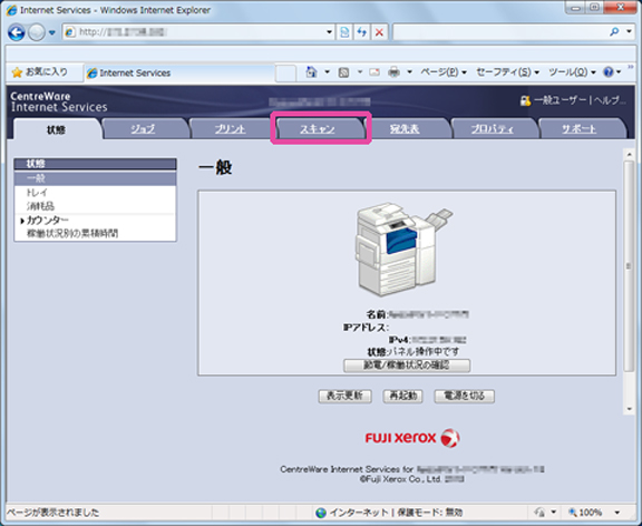 パソコンからCentreWare Internet Servicesにアクセスできるようにするには、本体にIPアドレスを設定しておく必要があります。操作を行う前に、機能設定リストをプリントし、本体にIPアドレスが設定されていること、およびHTTPプロトコルが有効になっていることを確認してください。