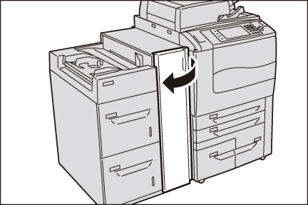 用紙トレイ6、7(大容量給紙トレイA4 2段)の正面カバーを開けます。