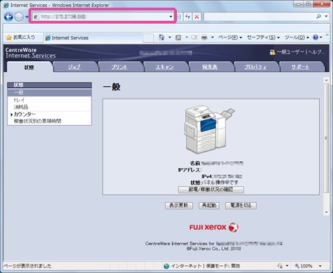 パソコンからCentreWare Internet Servicesにアクセスします。