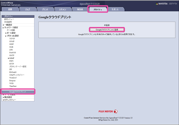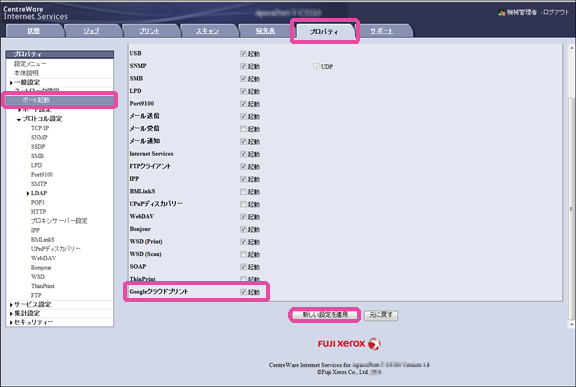 CentreWare Internet Services を使用して[Google クラウドプリント]ポートを起動します。