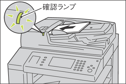 補足- 原稿をセットすると、確認ランプが点灯します。確認ランプが点灯していない場合は、再度、原稿をセットしてください。