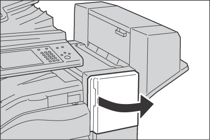 - 本機が節電状態になっている場合は、ホチキスカートリッジを交換する前に操作パネルで <節電>ボタンを押し、<機械確認>ボタンを押して節電状態を解除してください。