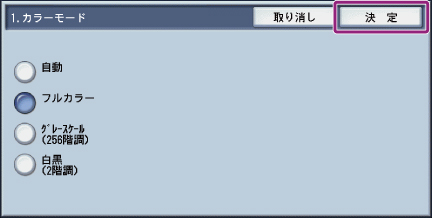 設定項目を選び、[確認/変更]を押します(ここでは[カラーモード]を選びます)。