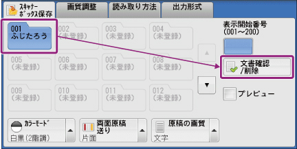 手順3で選んだボックスを選び、[文書確認/削除]を押します。